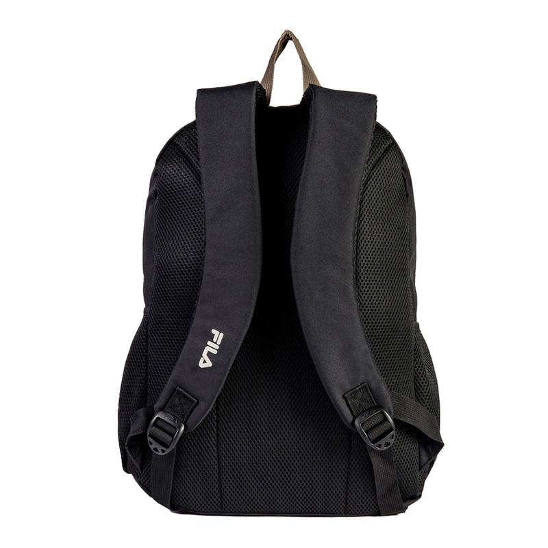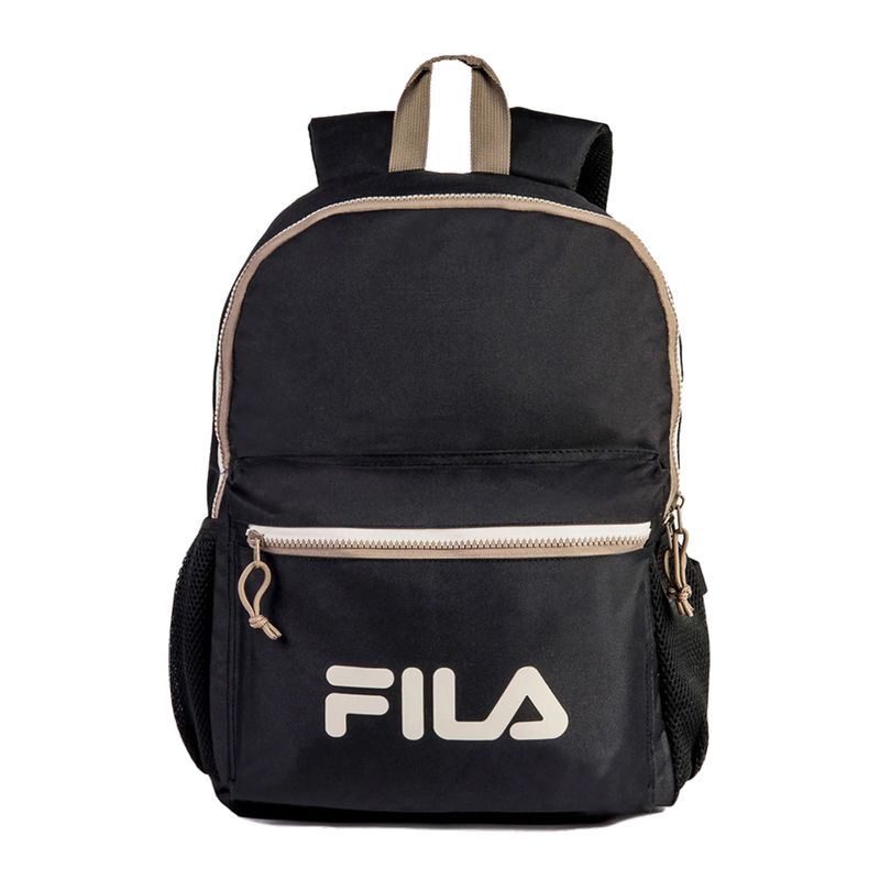 Mochila confeccionada en poliéster con forro personalizado Fila. Tiene cierre bicolor, bolsillo interno para computadora y bolsillos laterales en mesh. Logo Fila en la correa y maxi logo Fila Letter en el bolsillo delantero. Dimensiones (L X A X P): 30 cm X 43 cm X 14 cm.Capacidad: 18 litros.