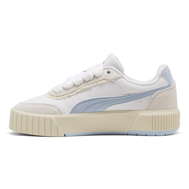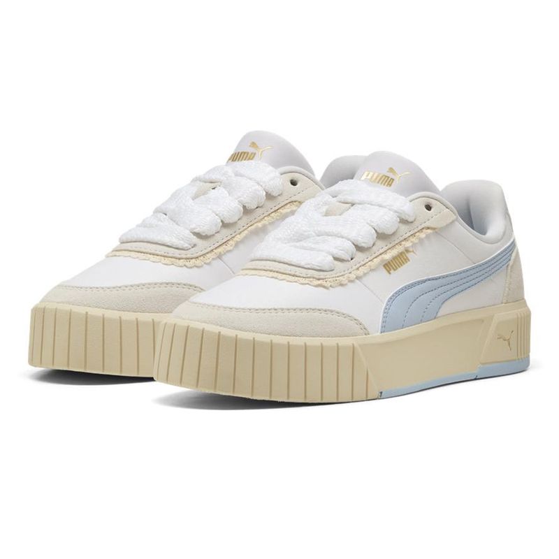 Zapatillas Puma Carina Mia Memories: Renuevan el estilo clásico del tenis con un diseño fresco y versátil para el día a día. Su capellada combina textil y cuero vacuno descarne para un look limpio, mientras la suela de caucho ofrece estabilidad y durabilidad en cada pisada. Fabricadas con materiales reciclados bajo la iniciativa Forever Better, su forro textil y construcción intuitiva brindan comodidad effortless para cualquier outfit, desde la rutina hasta planes casuales. Un calzado urbano que equilibra estilo, confort y conciencia ambiental.